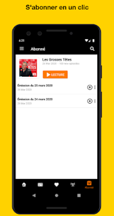 Orange Radio vous propose gratuitement un large choix de 33 000 radios du monde entier et plus de 6 000 podcasts (replays radio et natifs) sans aucune publicité où vous voulez, quand vous voulez.